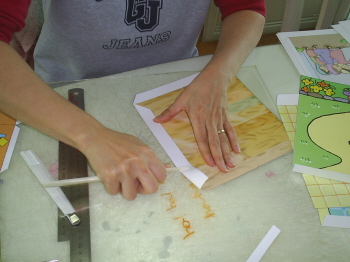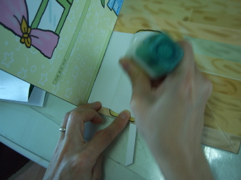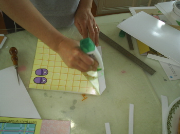 배경면의 뒷면에 풀칠해서 붙인다.