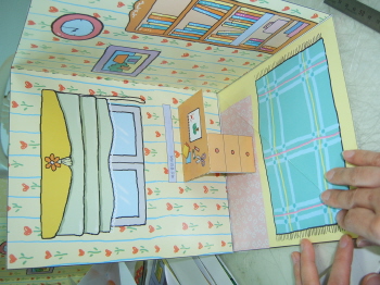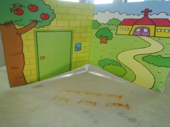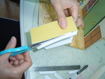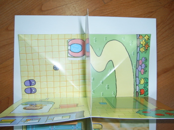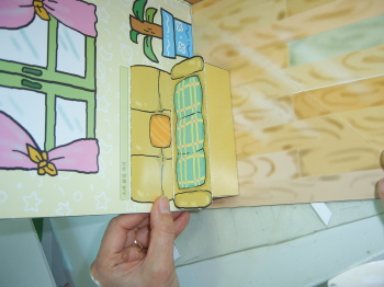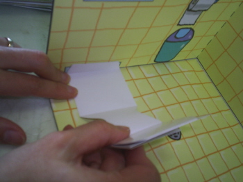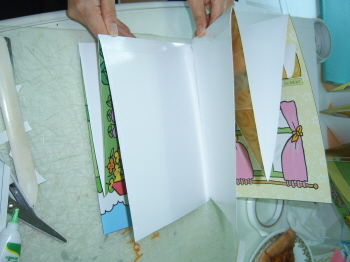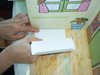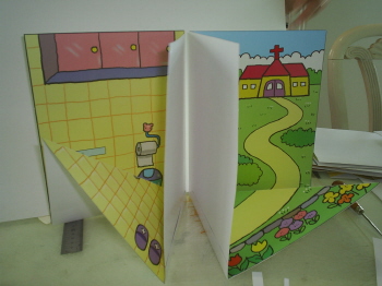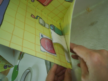 5-3-4: 배경면에 붙일 때는 풀칠을 하고, 반드시 접어서 붙인다(접어서 붙이지 않으면, 잭이 접혀지지 않는다.).