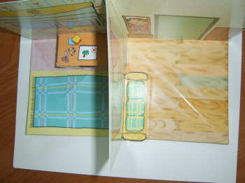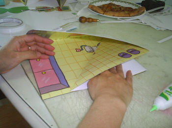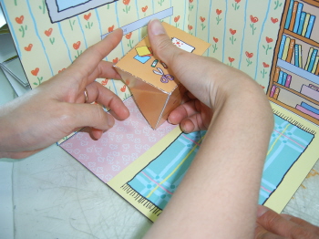책상을 배경면에 붙이기-접혀질수 있도록 풀칠한 후 접어서 눌러준다.