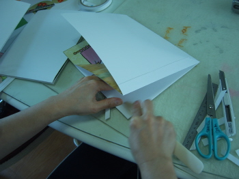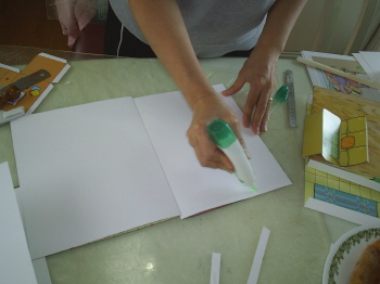 5-2-2: 풀칠해서 배경에 붙일 바닥면의 풀칠 부분은 접어 준다.(잘 접히고, 잘 붙게 하기 위해서)