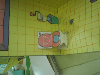 변기바닥붙인 후 배경에 붙인 면을 풀칠한다.