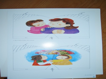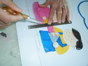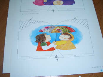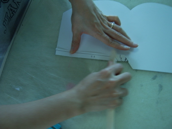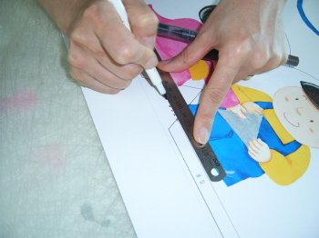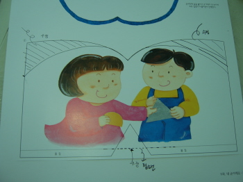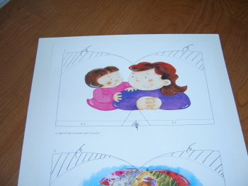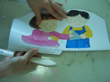 각 그림들이 잘 접어지도록 약하게 송곳으로 그어준다.