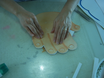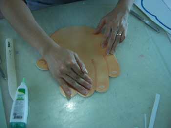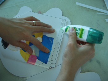 9-3) 풀칠을 해서 손그림의 안쪽에 붙인다.