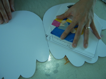 9-2-2: 그림의 밑면 풀칠부분을 붙인다.